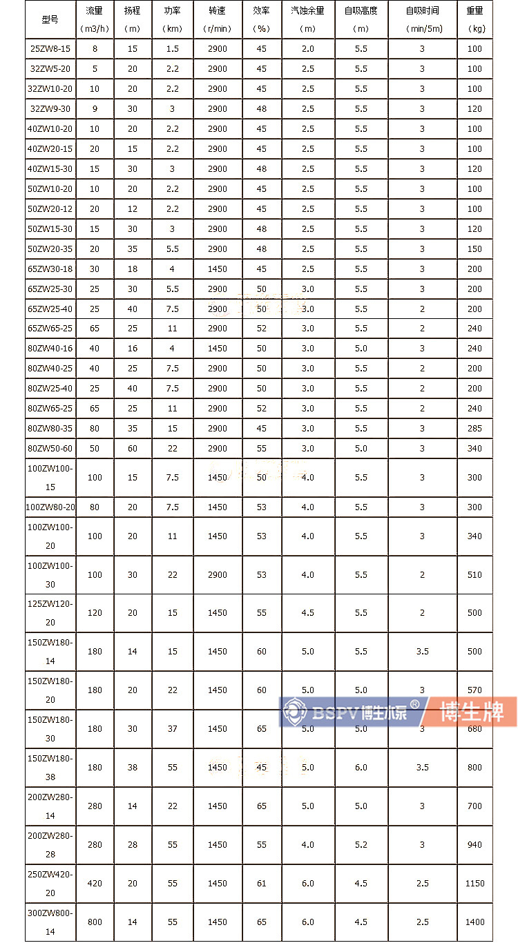 博生牌ZW系列自吸式無堵塞排污泵